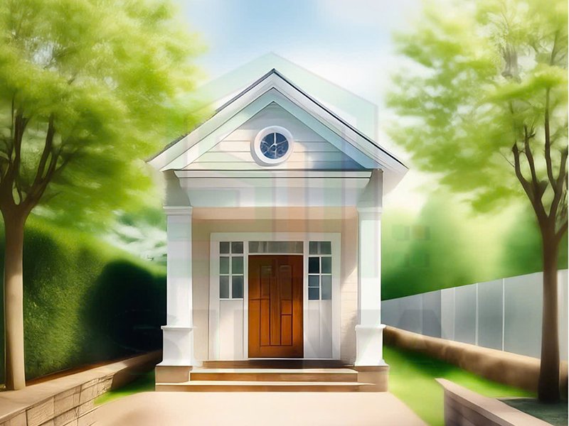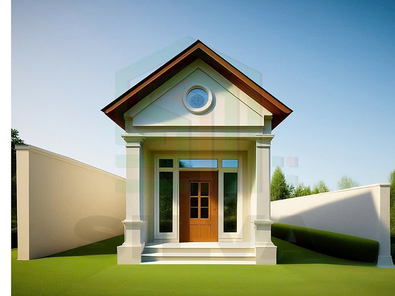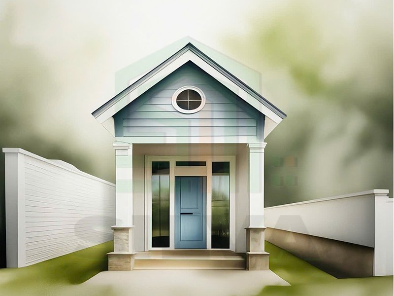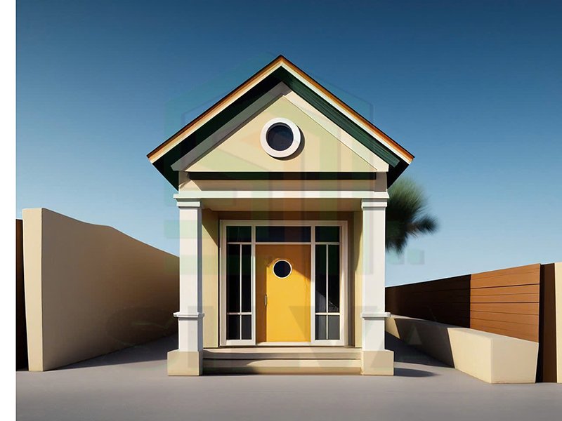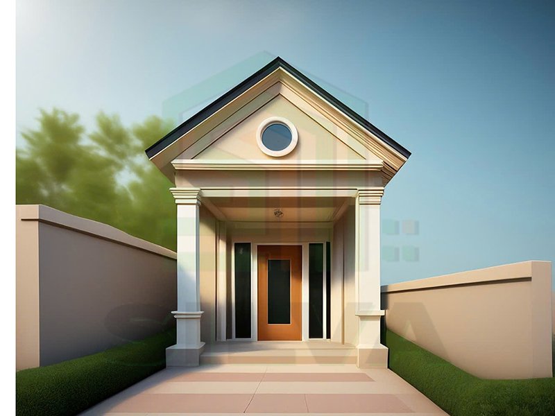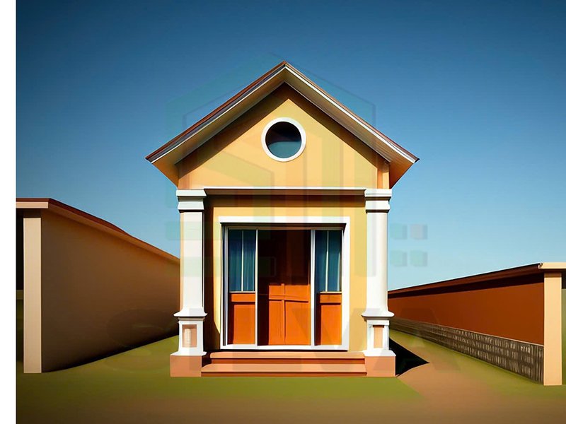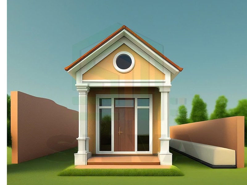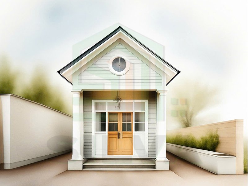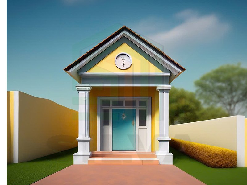 Ảnh phác thảo nhà cấp 4 này có phong cách tối giản, hiện đại. Một vài chi tiết cổ điển nhẹ nhàng như cột, mái thái được phác thảo ý tưởng tinh tế. Mặt tiền 5m vẫn đủ để đảm bảo sự đối xứng và thẩm mỹ. Mẫu này phù hợp đất lô kẹp, nhà ống thoáng hai mặt hoặc khu nông thôn đô thị hóa.