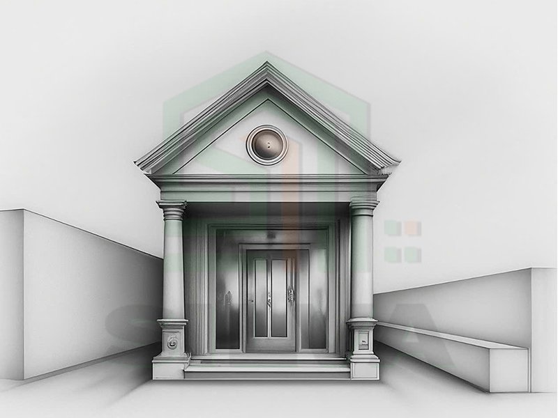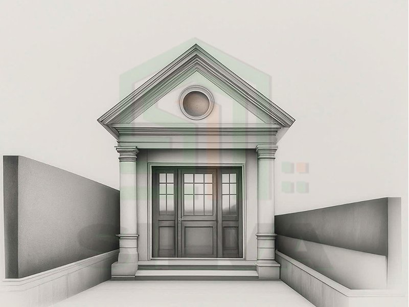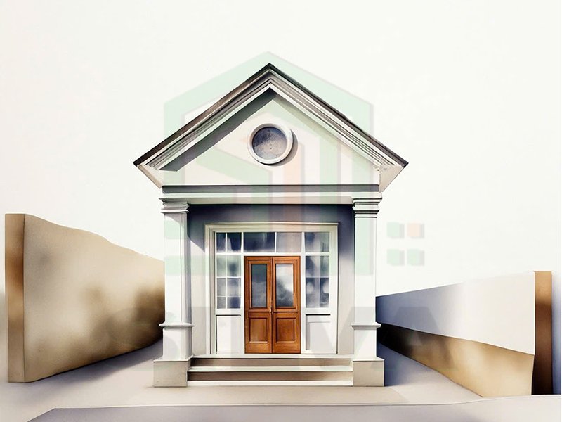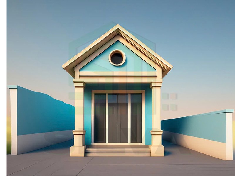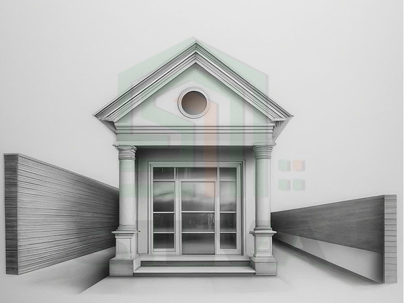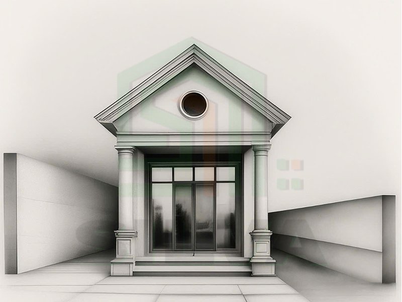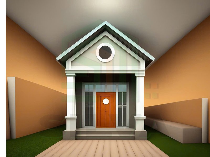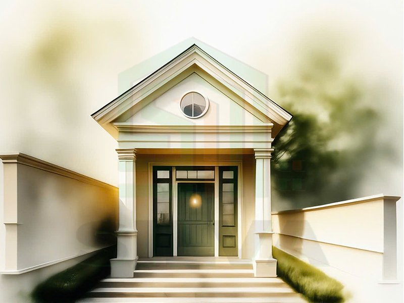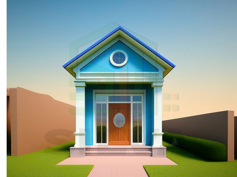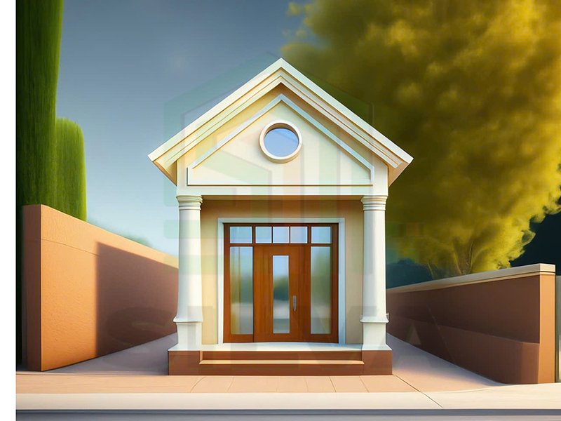 Ảnh phác thảo nhà cấp 4 này có phong cách tối giản, hiện đại. Một vài chi tiết cổ điển nhẹ nhàng như cột, mái thái được phác thảo ý tưởng tinh tế. Mặt tiền 5m vẫn đủ để đảm bảo sự đối xứng và thẩm mỹ. Mẫu này phù hợp đất lô kẹp, nhà ống thoáng hai mặt hoặc khu nông thôn đô thị hóa.